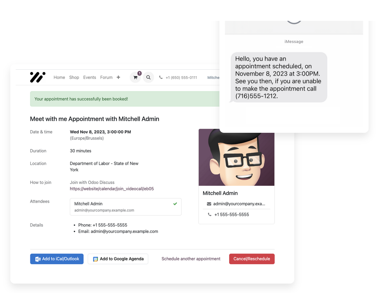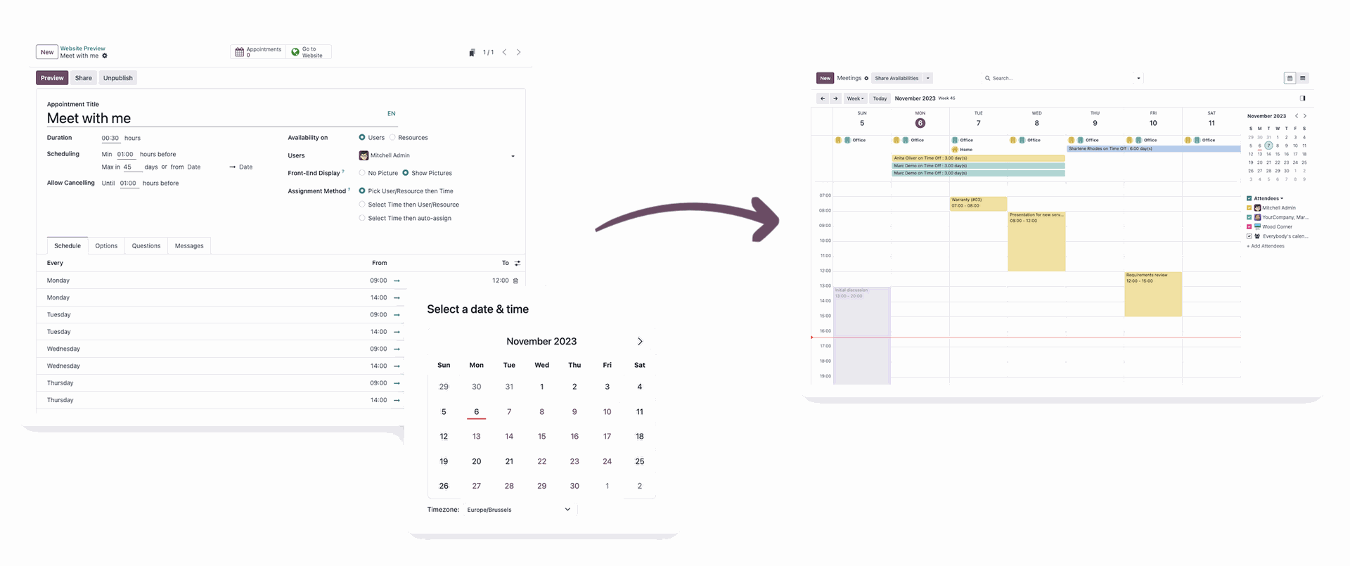 Let customers schedule meetings from any connected device with Odoo's responsive user interface.