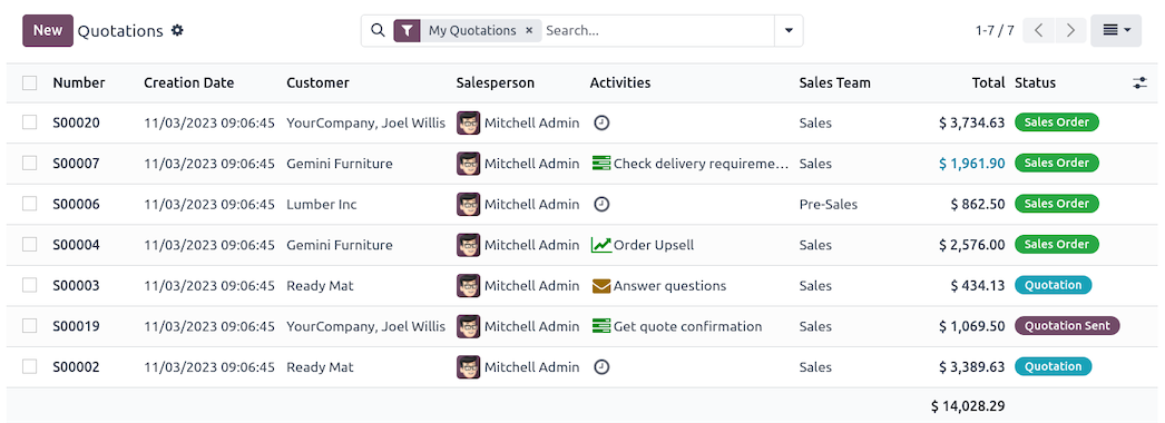 Quotations are optimized to help your company sell more by proposing additional products and other extra options, applying discounts and closing triggers, and more.